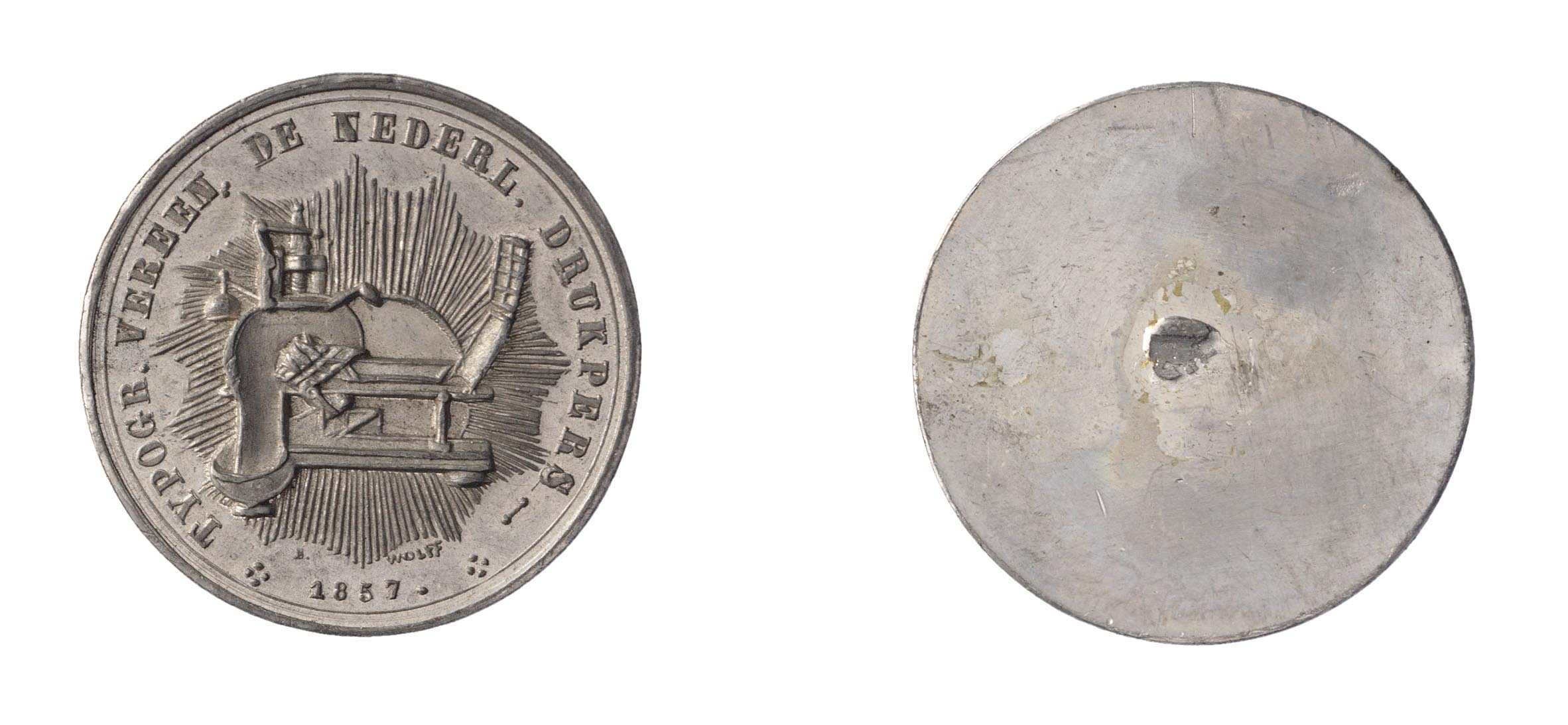 omschrift voorzijde: * TYPOGR. VEREEN. DE NEDERL. DRUKPERS- * - onbekende verwerving