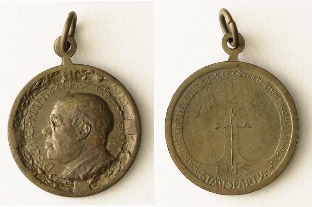omschrift voorzijde: DR.SCHAEPMAN . 1844 - 1903 CREDO . PUGO .