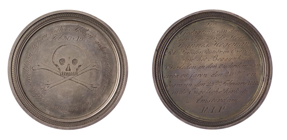 omschrift voorzijde: Ik ben gelijk gesteld aan het slijk der aarde, gelijk gesteld aan stof en asch / Job 30 v. 19.