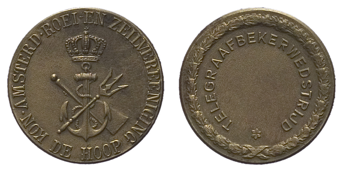 - omschrift voorzijde: KON. AMSTERDAM. ROEI-EN ZEILVERENIGING DE HOOP