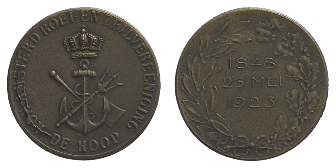 omschrift voorzijde: KON. AMSTERD. ROEI- EN ZEILVERENIGING DE HOOP