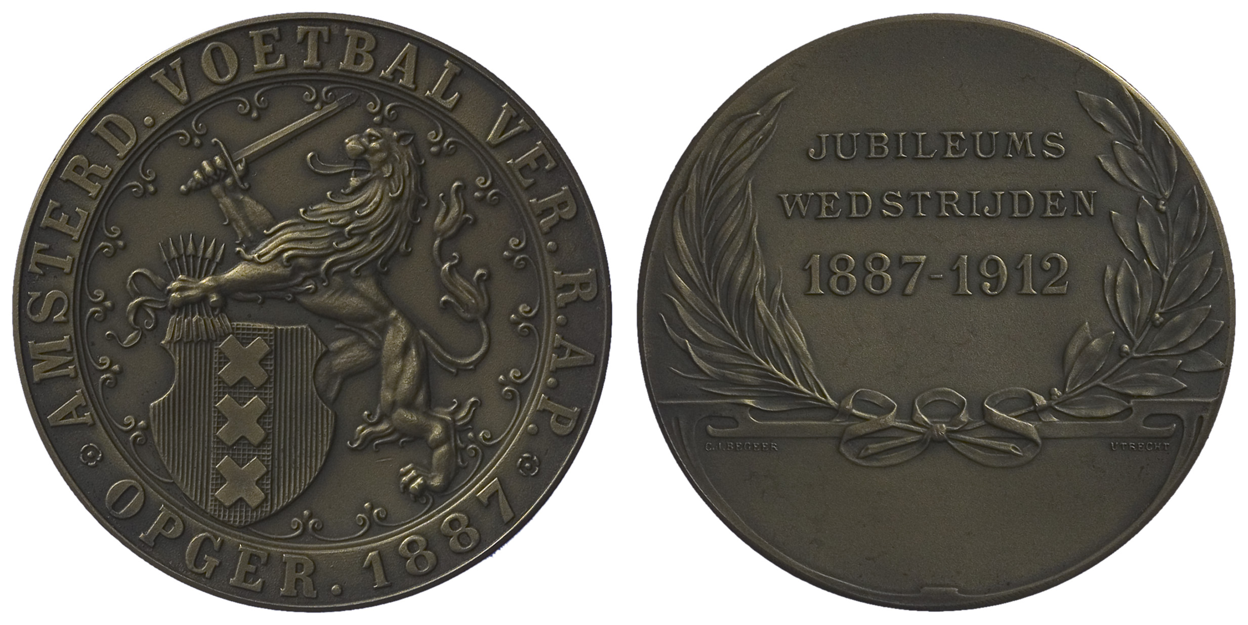 omschrift voorzijde: AMSTERDA. VOETBAL VER. R.A.P. * OPGER. 1887 *