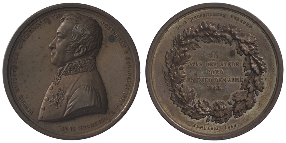 omschrift voorzijde: PIETER HUIDEKOPER BURGEMEESTER VAN - AMSTERDAM 1 FEBRUARIJ 1842 - 31 DECEMBER 1849.