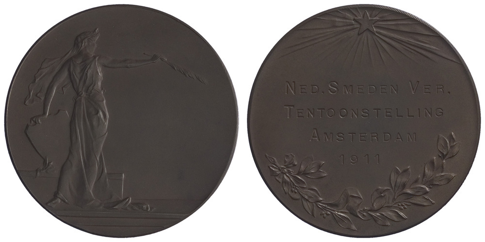 opschrift keerzijde: NED. SMEDEN VER. / TENTOONSTELLING / AMSTERDAM / 1911