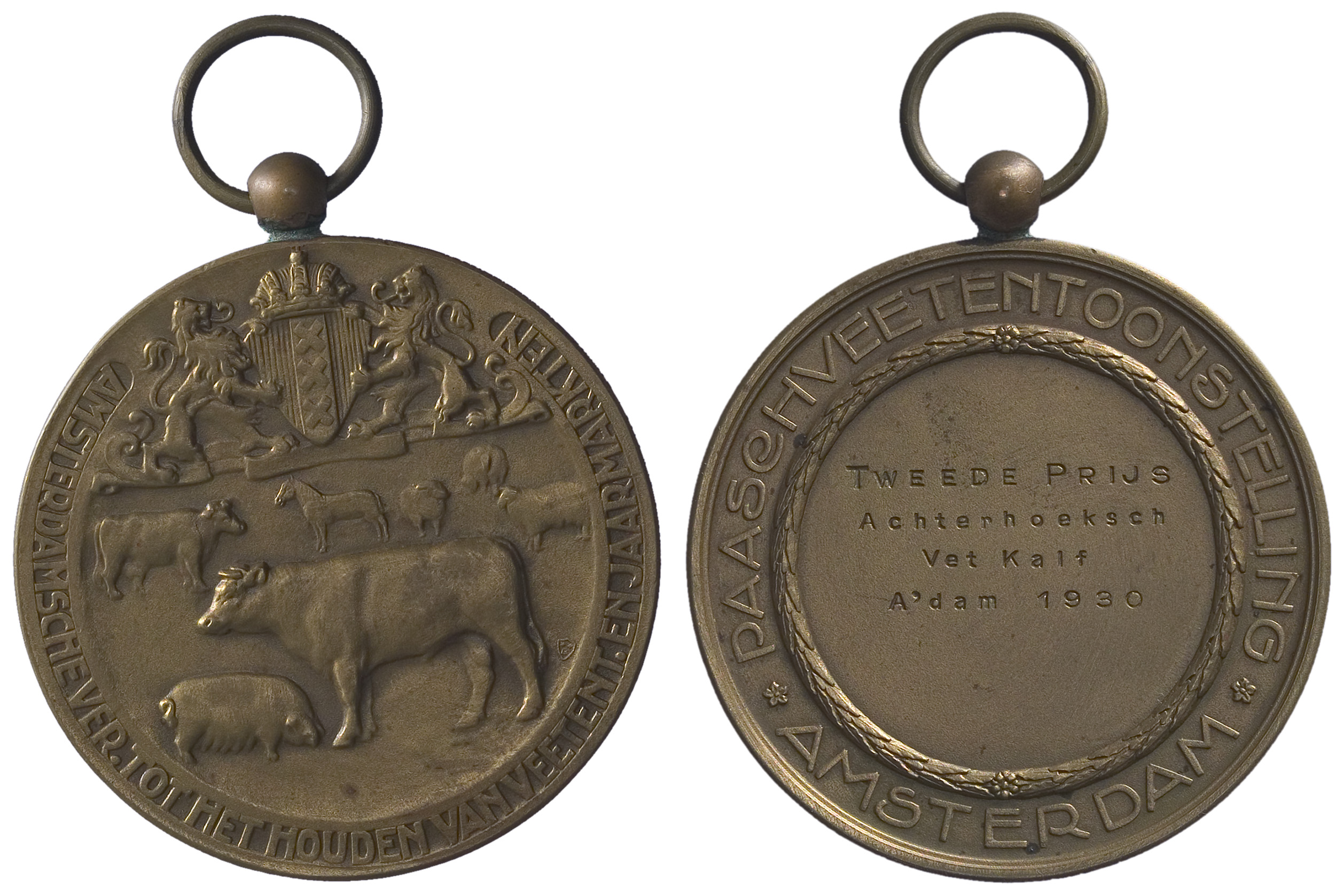 opschrift keerzijde: TWEEDE PRIJS / Achterhoeksch / Vet Kalf / A'dam 1930