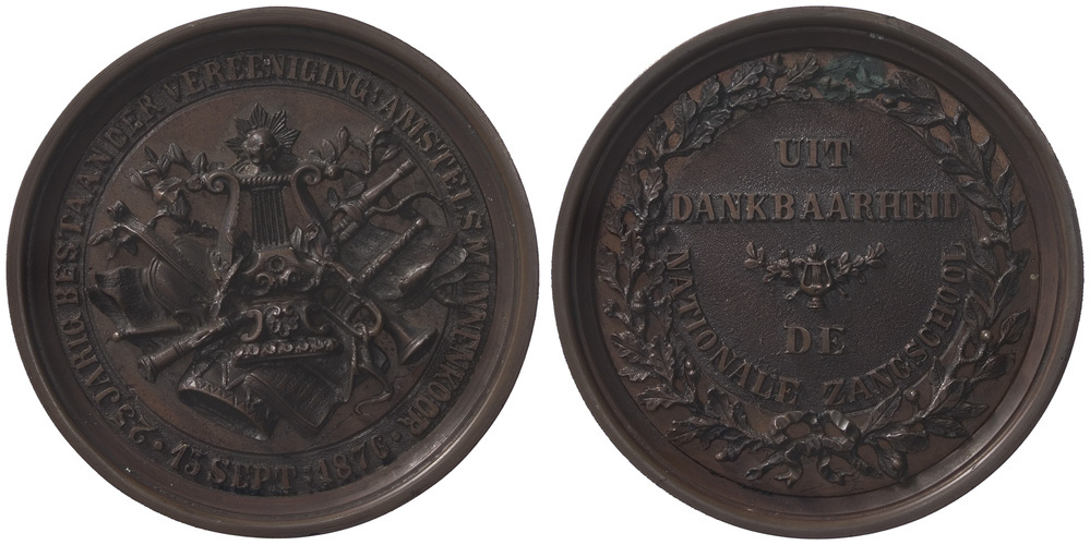 omschrift voorzijde: 25 JARIG BESTAAN DER VEREENIGING: AMSTELS MANNENKOOR 15 SEPT 1876