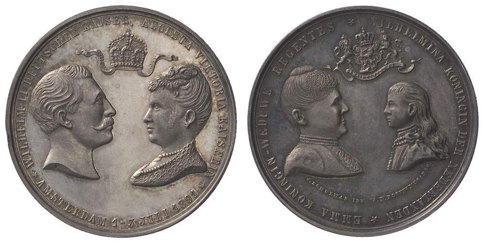 omschrift voorzijde: WILHELM II DEUTSCHER KAISER, AUGUSTA VICTORIA KAISERIN / AMSTERDAM 1-3 JULI 1891