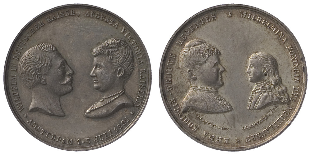 omschrift voorzijde: WILHELM II DEUTSCHER KAISER, AUGUSTA VICTORIA KAISERIN / AMSTERDAM 1-3 JULI 1891
