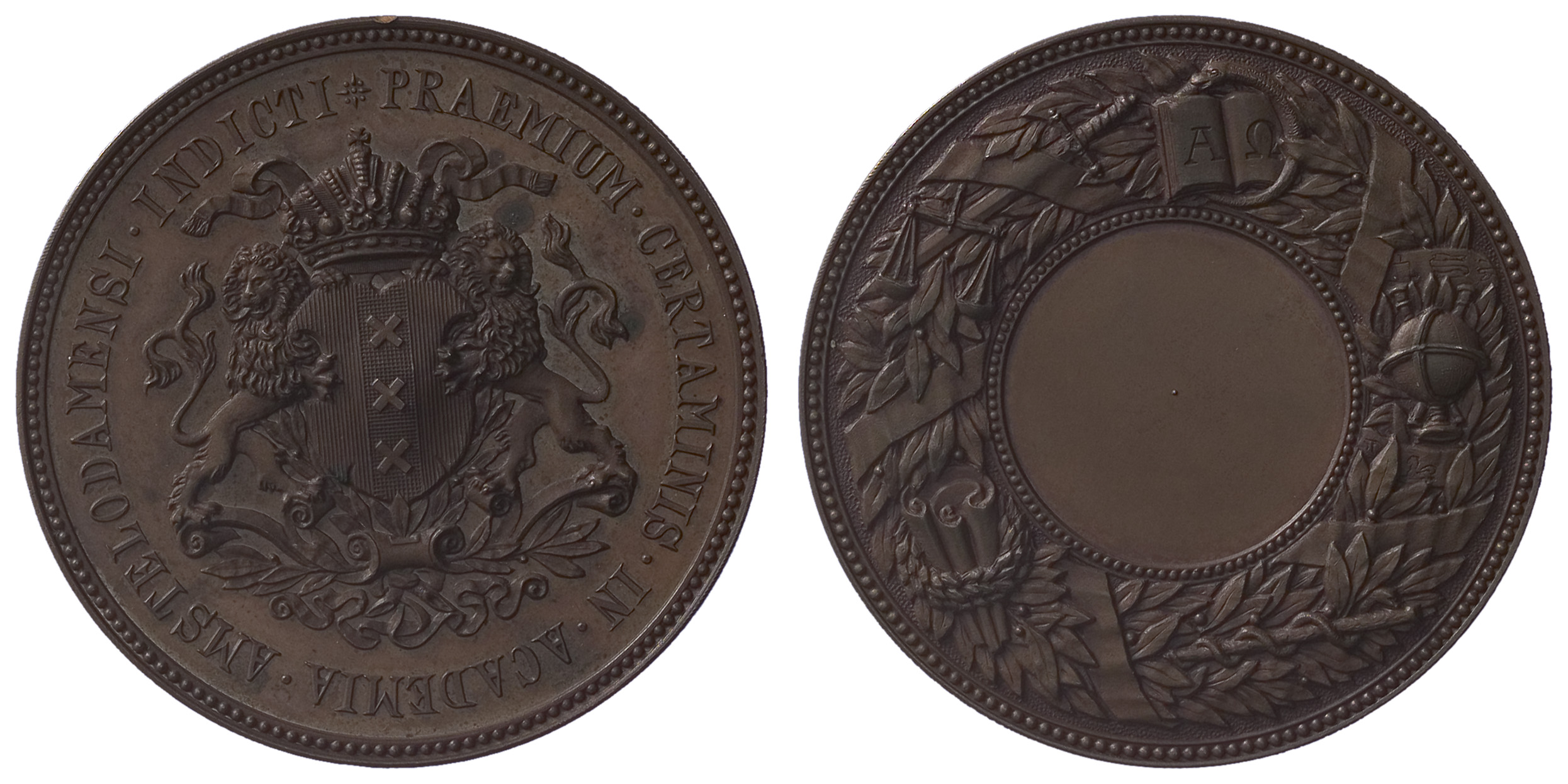 omschrift voorzijde: PRAEMIUM . CERTAMINIS . IN . ACADEMIA . AMSTELODAMENSI . INDICTI *
