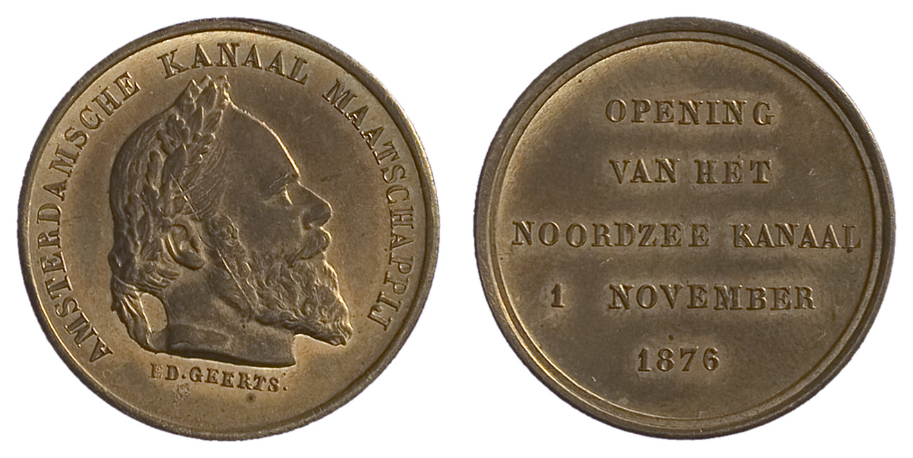 opschrift keerzijde: OPENING / VAN HET / NOORDZEE KANAAL / 1 NOVEMBER / 1876