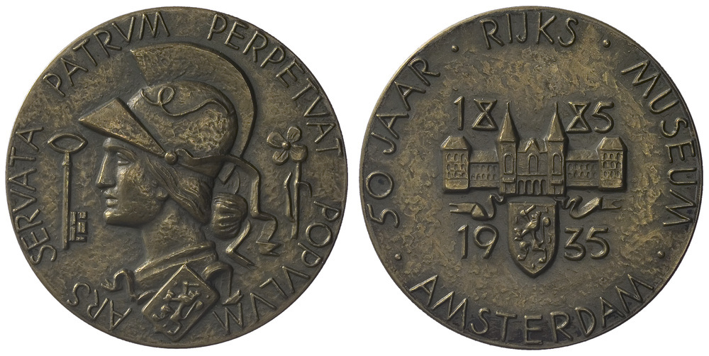 keerzijde: in een omschrift het Rijksmuseum waarboven een jaartal en onder een jaartal met het wapenschild van Nederland met een lint.