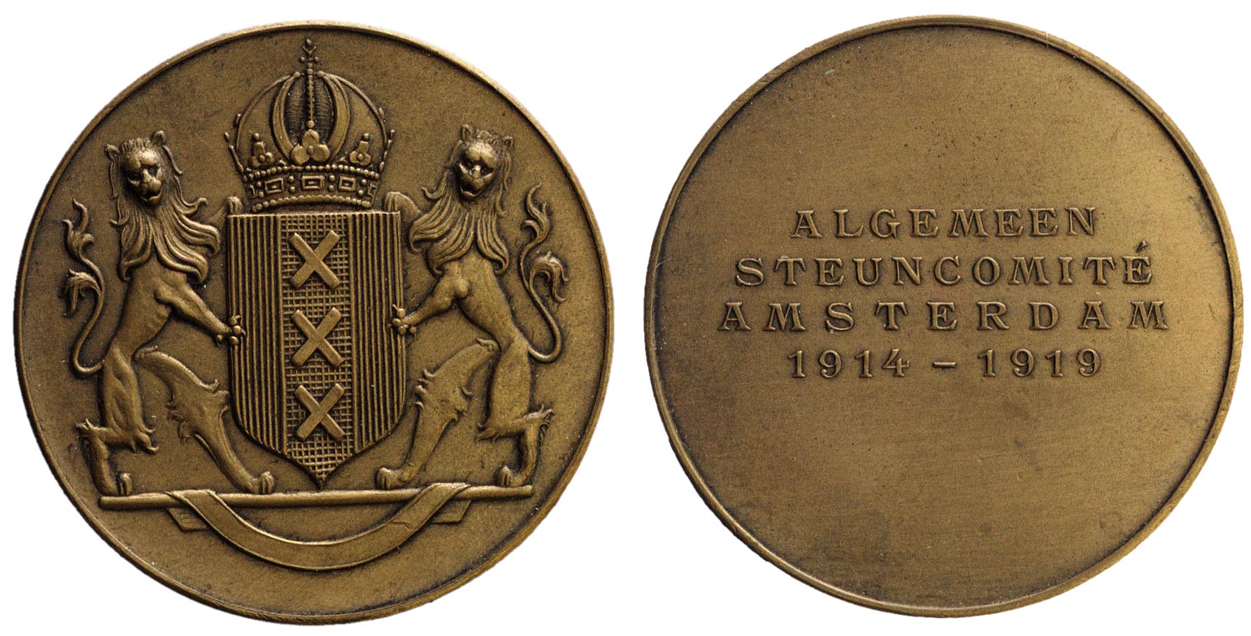 - opschrift keerzijde: ALGEMEEN / STEUNCOMITÉ / AMSTERDAM / 1914-1919