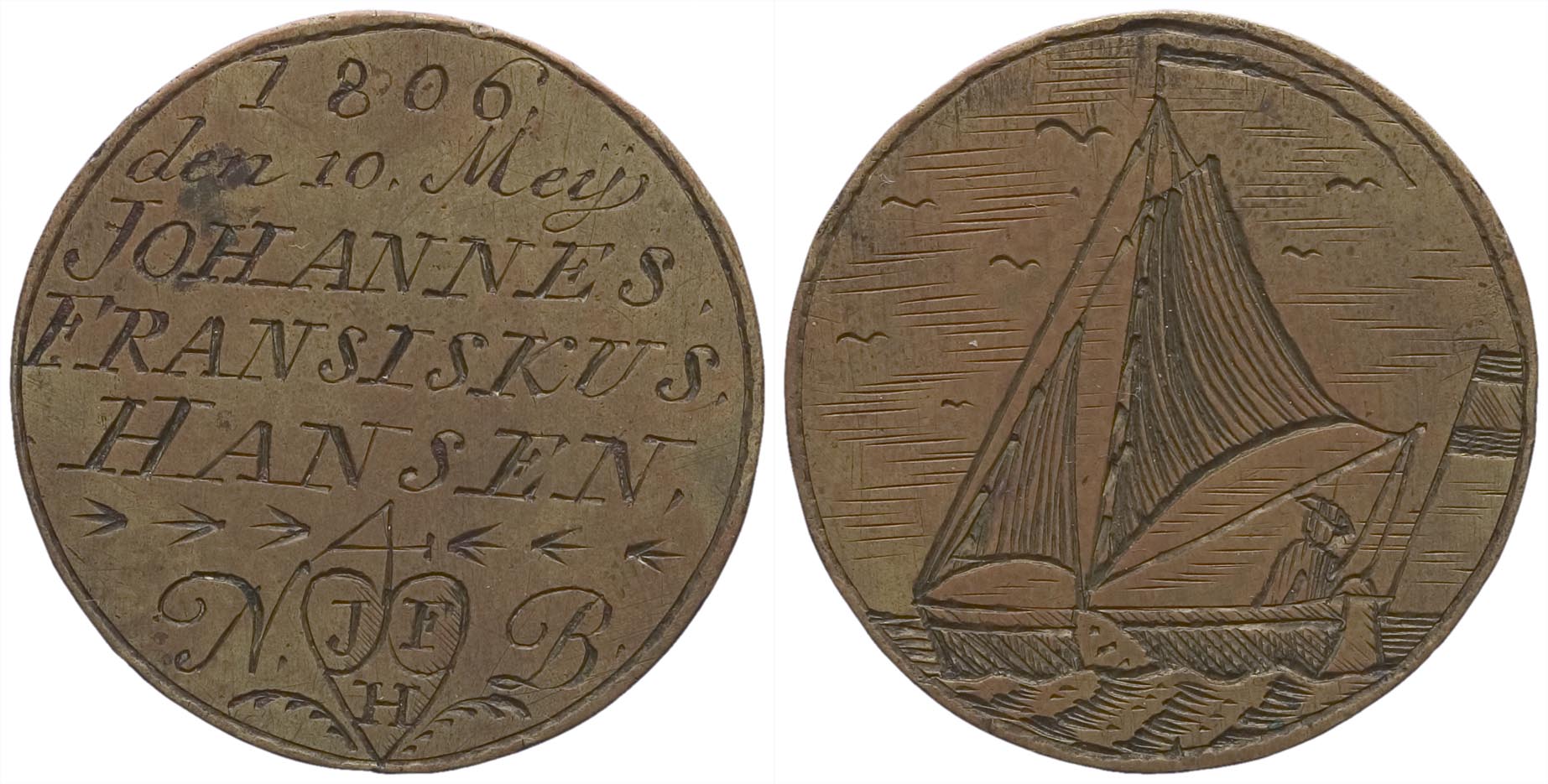 opschrift keerzijde: 1806 / den 10. Meij / JOHANNES, / FRANSISKUS, / HANSEN, / N. JFH B.