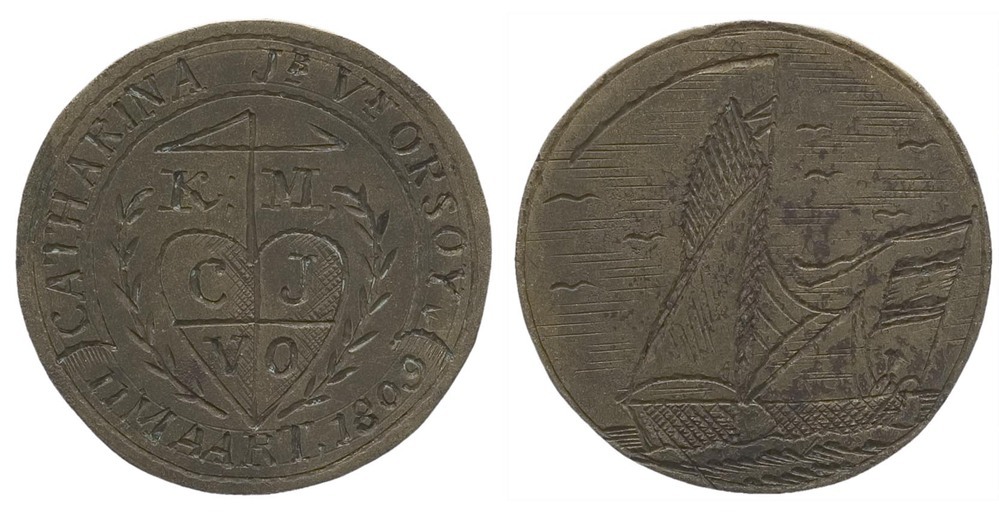 omschrift keerzijde: CATHARINA Jb Vn ORSOY / 11 MAART 1809
