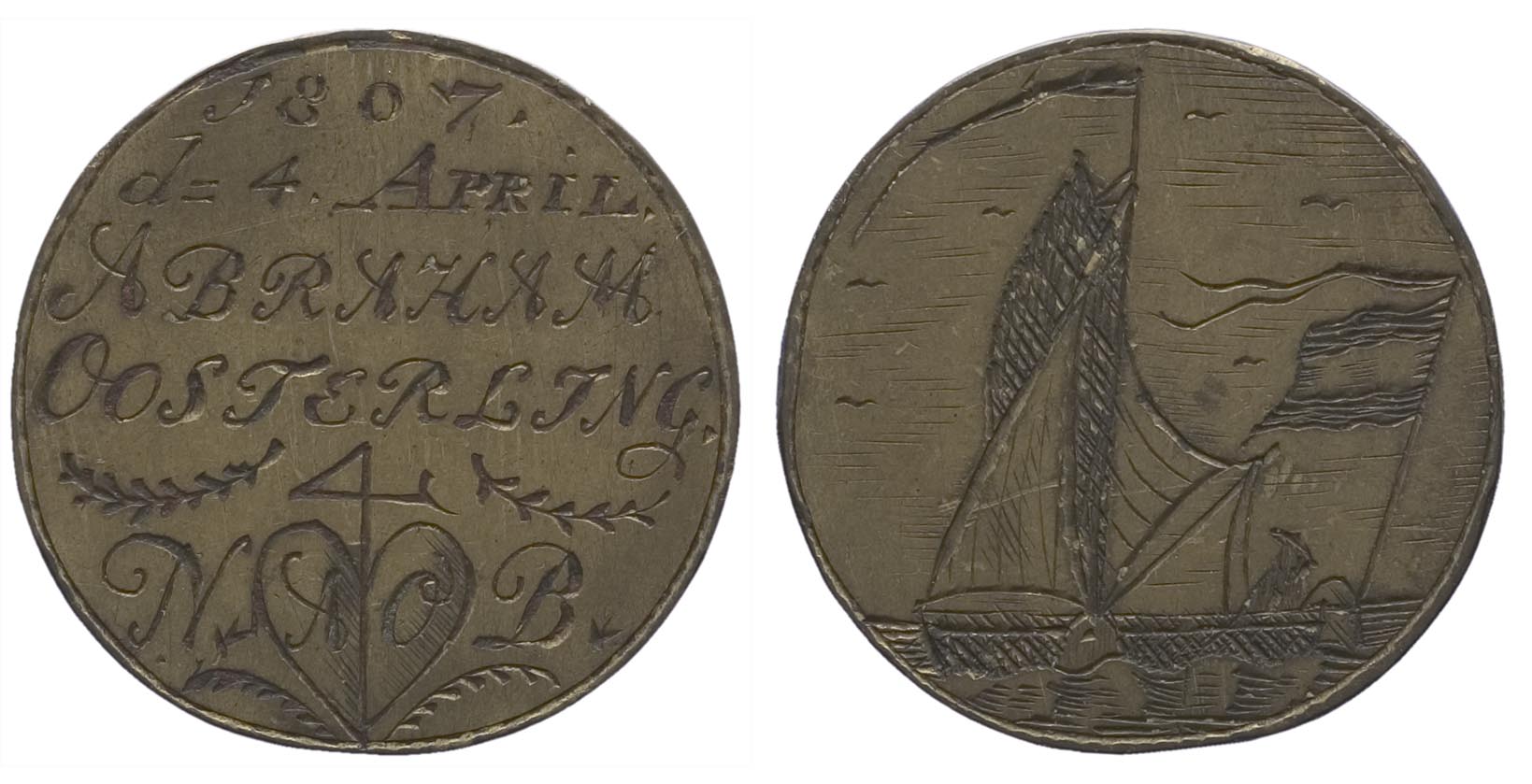 signatuur, datering keerzijde: 1807 / d= 4 APRIL / ABRAHAM / OOSTERLING. / N AO B