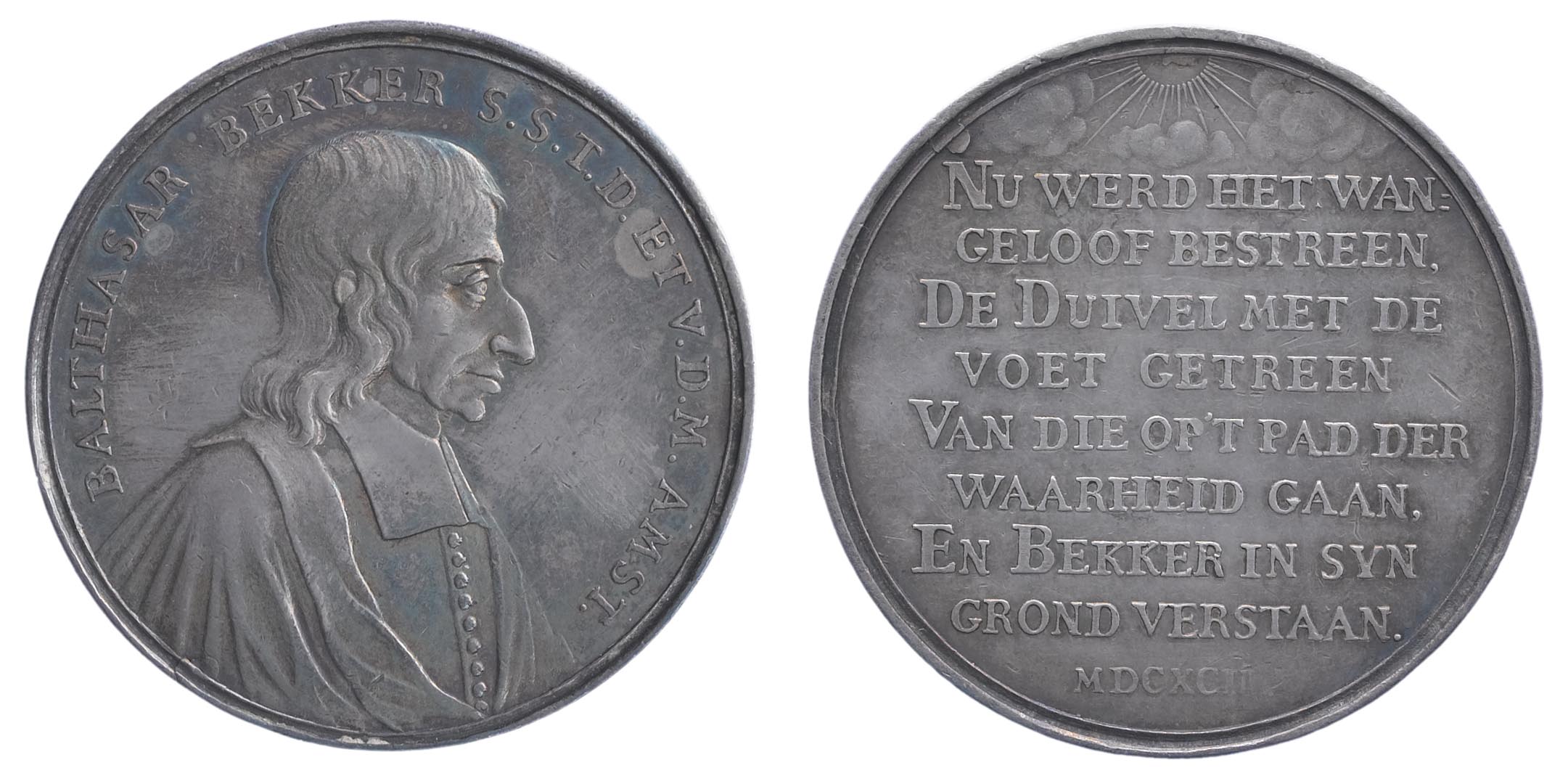 opschrift keerzijde: Nu werd het wan / geloof bestreen,/ De Duivel met de / voet getreen / Van die op 't pad der / waarheid gaan. / En Bekker in syn / grond verstaan./ MDCXCII