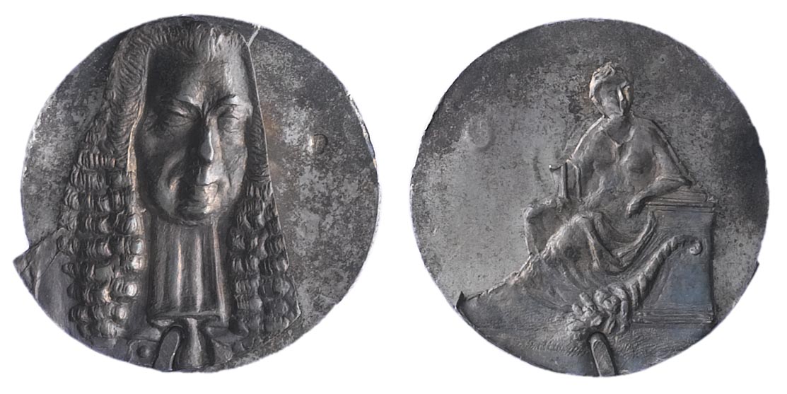 voorzijde: het borstbeeld van Hendrik Danielsz Hooft en face. keerzijde: de Amsterdamse maagd in een zetel, met de linker elleboog rustend op een boek op een altaar. Op de voorgrond een hoorn des overvloeds.- Trefwoorden