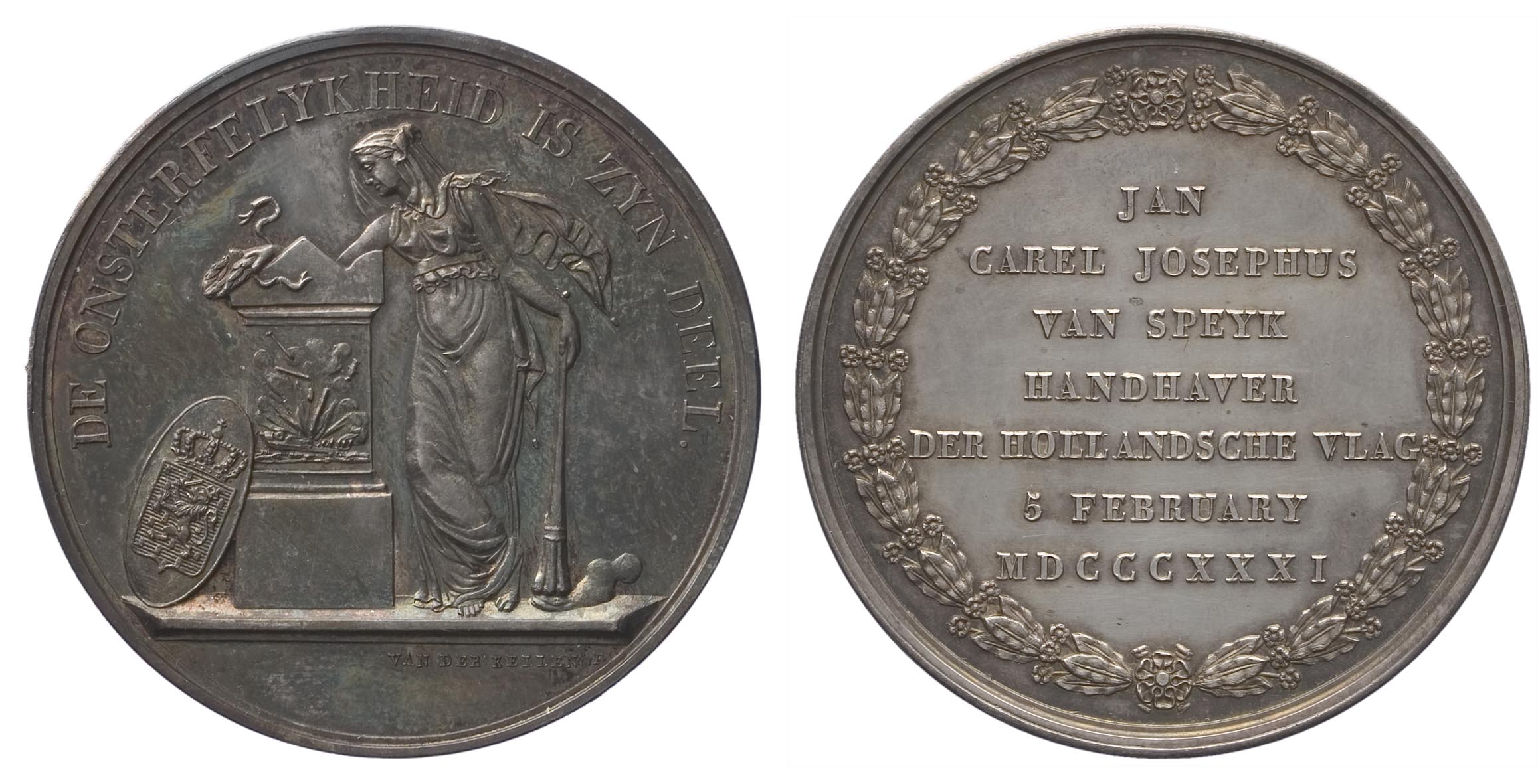 opschrift keerzijde: JAN / CAREL JOSEPHUS / VAN SPEYK / HANDHAVER / DER HOLLANDSCHE VLAG / 5 FEBRUARI / MDCCCXXXI