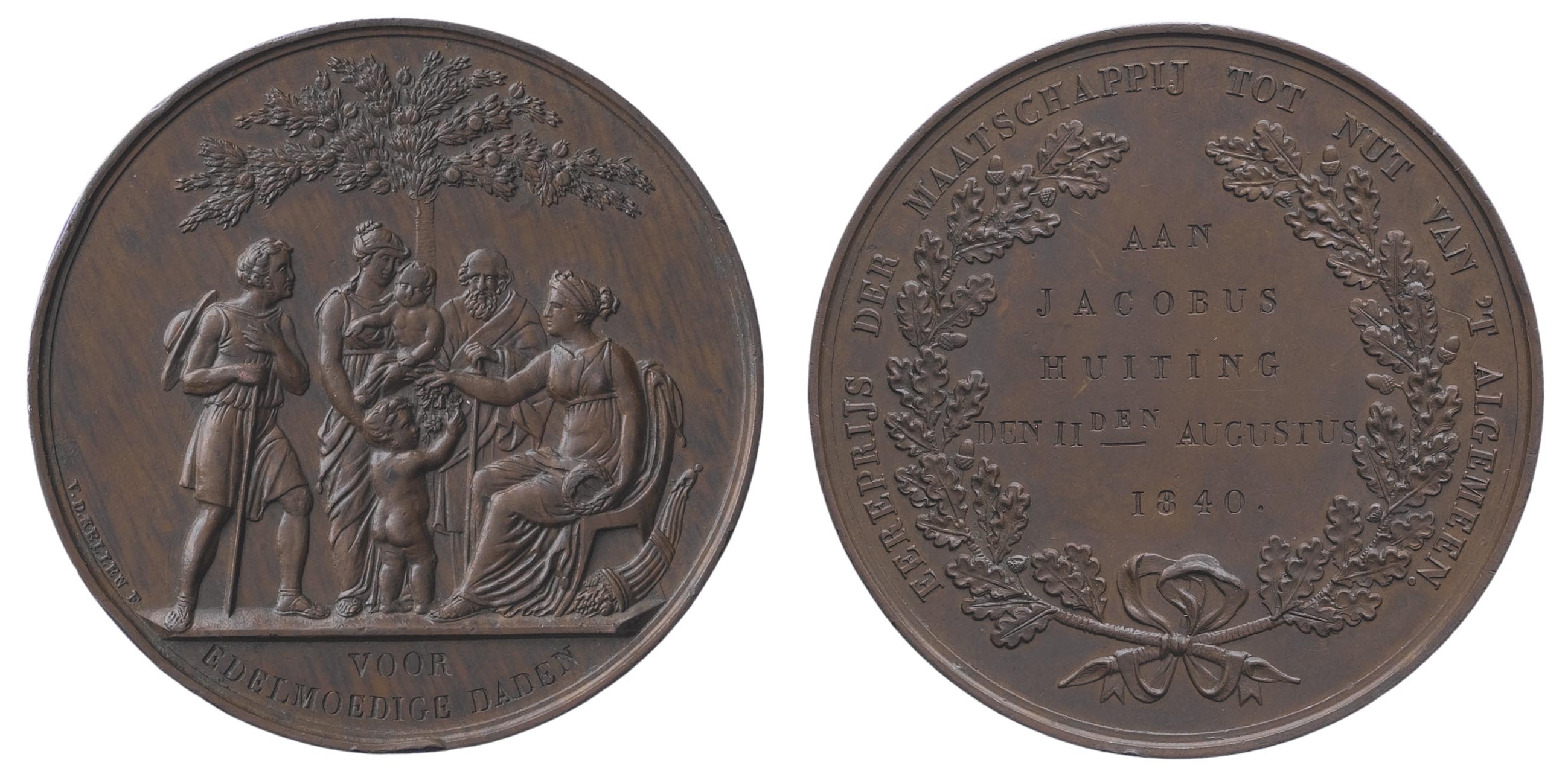 opschrift keerzijde: AAN / JACOBUS / HUITING / DEN 11DEN AUGUSTUS / 1840.