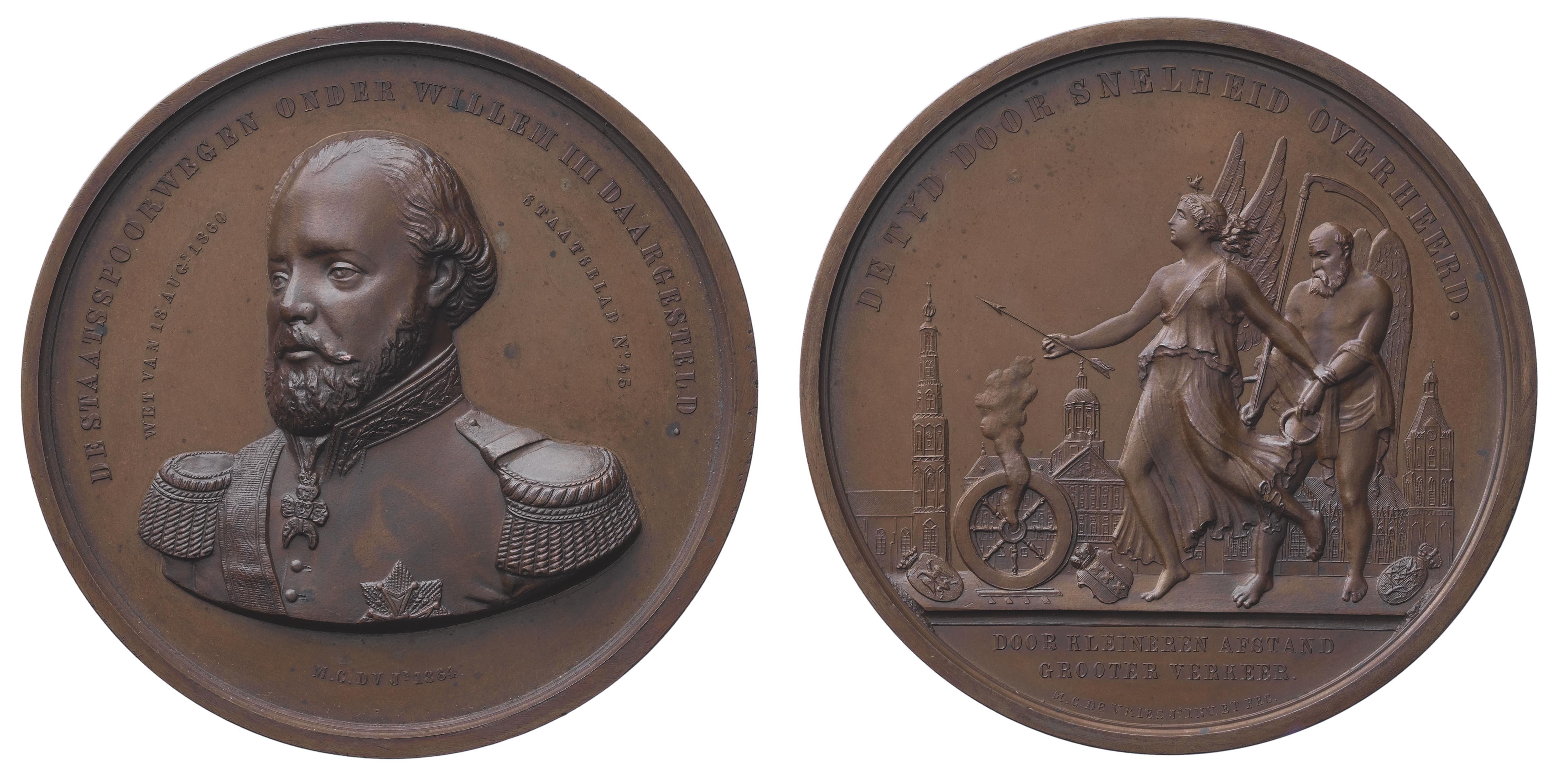 omschrift voorzijde: DE STAATSSPOORWEGEN ONDER WILLEM III DAARGESTELD.