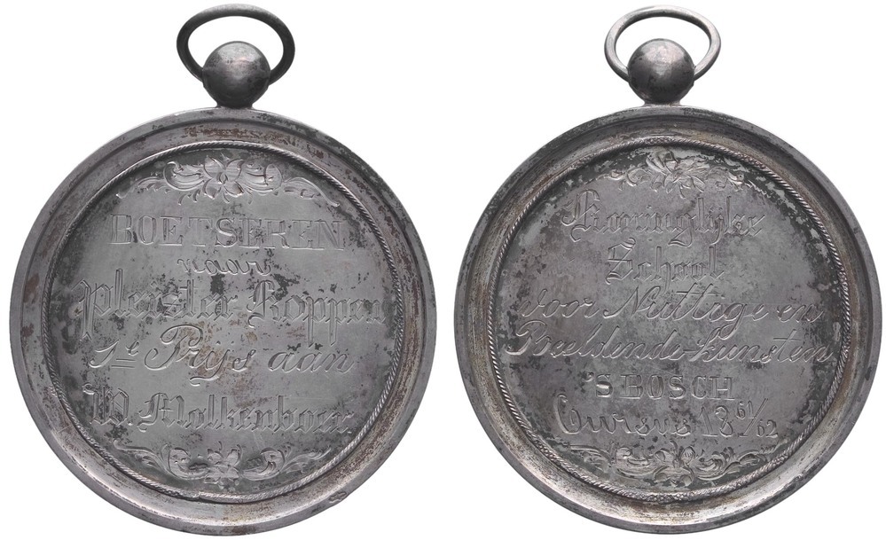 opschrift voorzijde: KONINKLIJKE / SCHOOL / Voor Nuttige en / Beeldende kunsten / 'S BOSCH / CURSUS 18 61/62