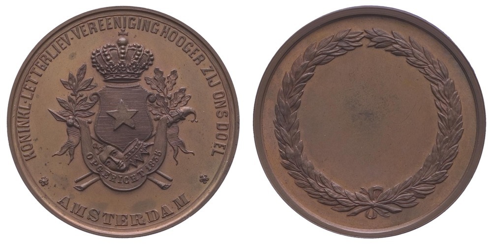 omschrift voorzijde: KONINKL. LETTERLlEV. VEREENIGING HOOGER ZIJ ONSDOEL * AMSTERDAM *