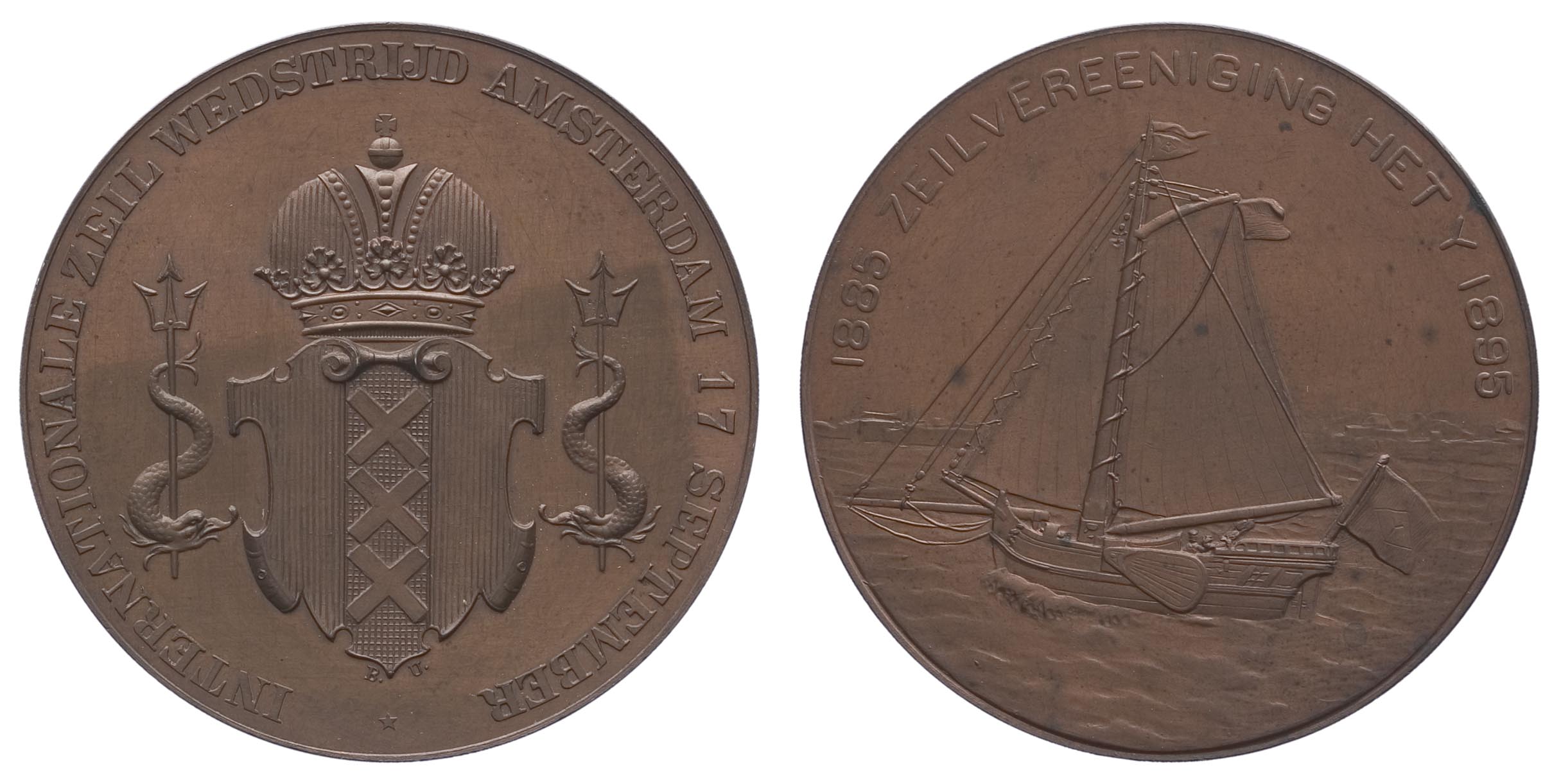 omschrift keerzijde boven: 1885 ZEILVEREENIGING HET Y 1895