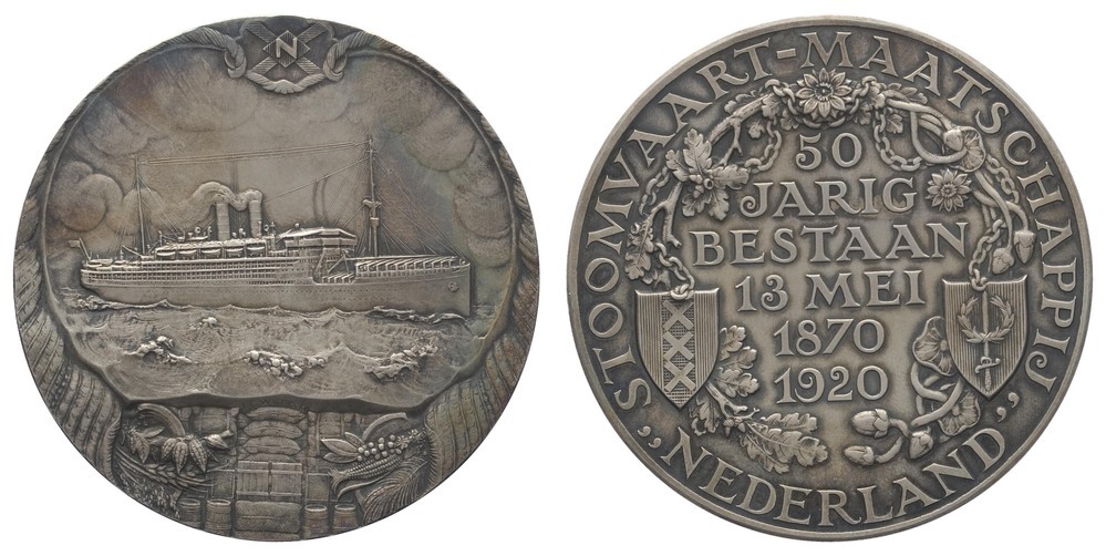 omschrift keerzijde: STOOMVAART-MAATSCHAPPIJ "NEDERLAND"