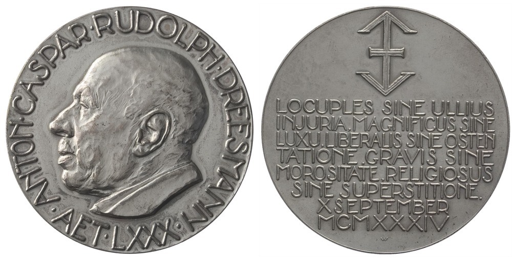 omschrift voorzijde: ANTON.CASPAR.RUDOLPH.DREESMAN.AET.LXXX.