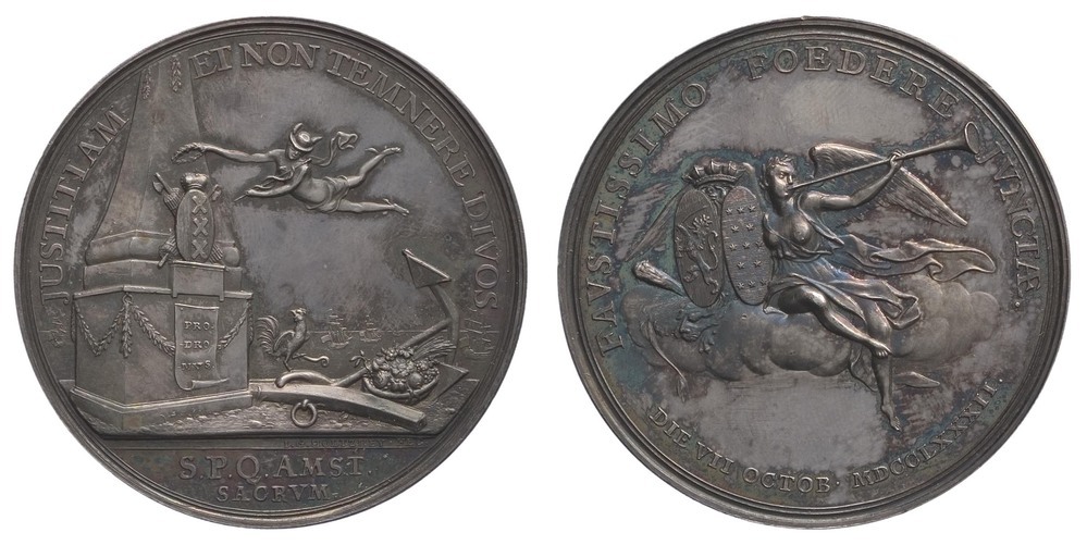 omschrift keerzijde: FAVSTISSIMO FOEDERE JVNCTA. / DIE VIII. OCTOB. MDCCLXXXII