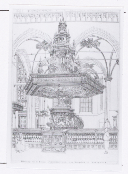 - Afbeelding van de Fraaye Predikstoel in de Nieuwekerk tot Amsterdam (naar Jan van der Heyden)