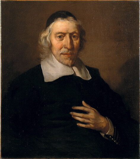 etiket achterzijde, onderaan de lijst: Isaac Commelin, 1598-1676, Geschiedschrijver van Amsterdam, geschilderd door P. van Anraadt 1675.