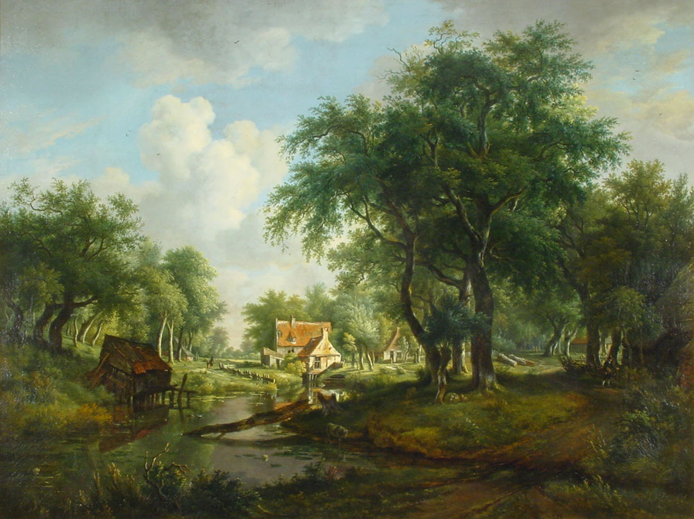 - Een boomrijk landschap met een beek, 1807