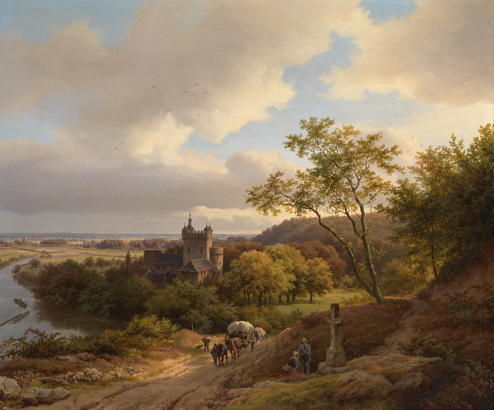 - Een kasteel tussen bomen aan een rivier, 1845