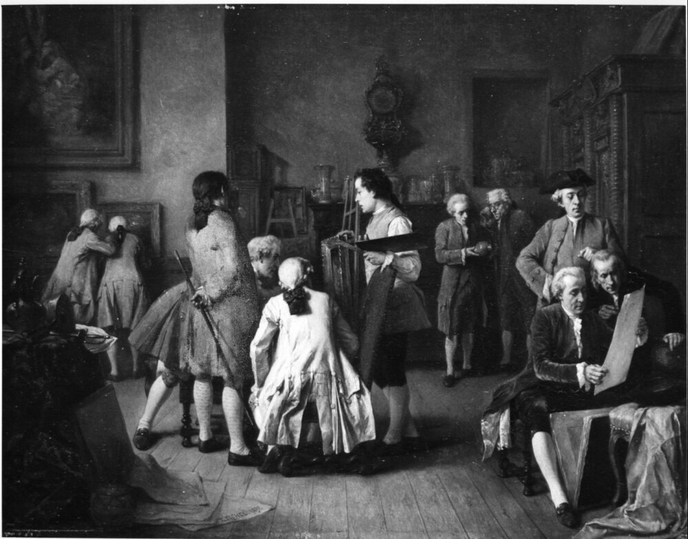 'Het bezoek bij een schilder', in 1859 vervaardigd door Eugène Fichel, werd in april van hetzelfde jaar geëxposeerd op de Parijse Salon. De catalogus vermeldt dat het schilderij "Des amateurs dans un atelier de peintre" toebehoorde aan de heer Fodor. Waarschijnlijk heeft Fodor het werk direkt van de schilder gekocht en - alvorens het naar Nederland te sturen - toestemming gegeven voor de expositie. ( Gusta Reichwein)