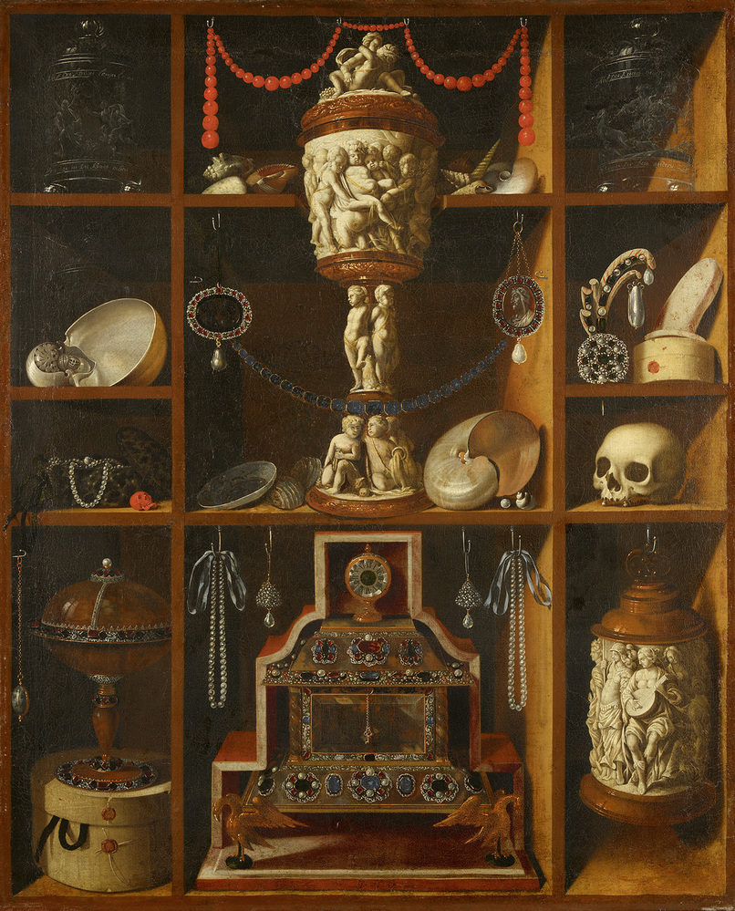 Dit schilderij is een van de weinige Oude Meesters in de verzameling van Abraham Willet. Het doek kan geïnterpreteerd worden als een ideaalbeeld van zijn eigen verzamelaspiraties. De kostbare objecten, vervaardigd van verschillende materialen, zijn realistisch uitgebeeld. Soortgelijke voorwerpen, maar dan in een eenvoudiger uitvoering, zijn ook in de collectie van Willet terug te vinden. Voorbeelden zijn pronkzilver, gegraveerde glazen, gesneden ivoren, schelpen en luxe snuisterijen. ( Bert Vreeken)