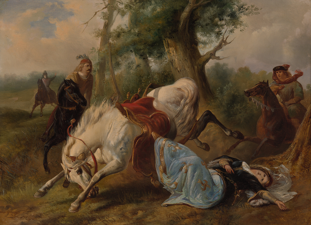 Het lukte Maximiliaan en Maria uiteindelijk om de orde enigermate te herstellen. Zij werden in de meeste steden dan ook plechtig gehuldigd. (...) Maria overleefde de vestiging van haar gezag echter niet lang. Toen zij in hoogzwangere toestand bij Brugge een rit op haar paard maakte, bezeerde zij zich bij een val zo deerlijk dat zij na enkele dagen, op 27 maart 1482, in die stad overleed. ( Dedalo G. Carasso)