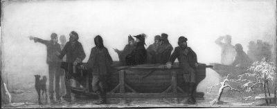 De dooi die op de felle vorst van december 1860 volgde, veroorzaakte in het gebied van de Maas, maar vooral de Merwede ontzaglijke ijsverstoppingen. Het water steeg in Maas en Waal tot ongekende hoogte en nadat op 5 januari de dijk te Brakel was bezweken, berichtten de dagbladen tot het einde van die maand over dijkbreuk na dijkbreuk. Als gevolg daarvan werden zevenenvijftigduizend bunders tussen Maas en Waal tot aan de daken der huizen toe onder het water bedolven en verkeerde Zaltbommel enige tijd in ernstig gevaar. Z.M. koning Willem III was terstond overal waar de waterstand het hachlijkst was, de nood het hoogst en de toestand schijnbaar hopeloos. Zijn voorbeeld bezielde een ieder wiens vernuft, kennis of kracht tot redding of behoud kon meewerken. De koning trotseerde de ongemakken van het seizoen en de watersnood, en verkeerde meermalen in gevaar. Het kasteel van Neerijnen, waar Z.M. door baron van Pallandt werd ontvangen, was het uitgangspunt van zijn dagelijkse tochten in de Bommelerwaard. Eens keerde men in twee schietschouwen naar Zaltbommel terug. In de ene bevonden zich de koning, prins Hendrik, baron van Pallandt van Neerijnen en graaf van Limburg Stirum, de commissaris des konings in Gelderland. In de tweede zaten schout-bij-nacht May, de heer De Kock en baron Snouckaert van Schauburg. Een zware mist maakte de weg bij het invallen van de avond onherkenbaar. Omdat het kompas stuk was wisten de schippers geen middel om de koers te bepalen of de schouwen naar Zaltbommel te brengen. gelukkig naderden er echter twee schaatsenrijders, die de schippers de juiste weg wezen en de hoge reizigers uit hun gevaarlijke situatie hielpen. ( Dedalo G. Carasso)