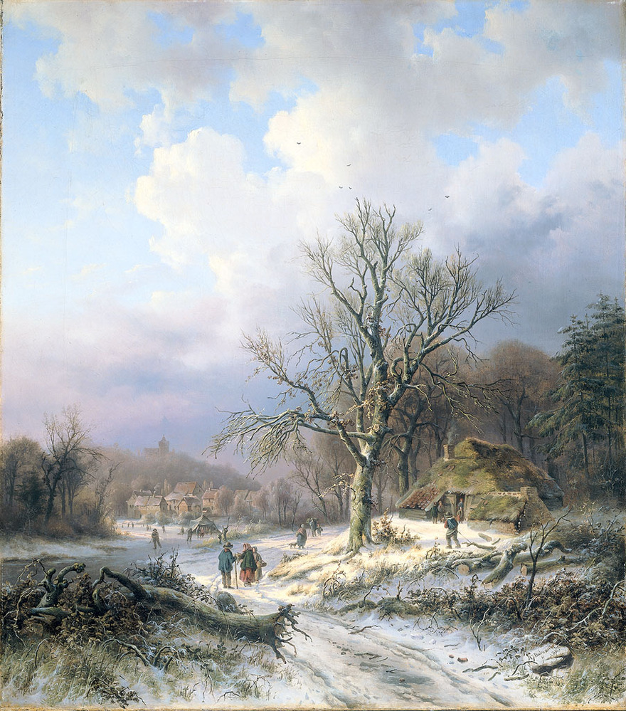 "; veiling, Anthony Oberman [gedeelte Van Goor [? Van Goon]], Amsterdam (J. de Vries et al.), 31 maart 1846, nr. 13 ("h. 68 d., br. 61 d. [68 x 61 cm] Doek. Een besneeuwd Wintergezicht in de omstreken der stad Cleve; langs eene boschrijke streek loopt een breede landweg, en meer achterwaarts vertoonen zich begroeide heuvels; op eene bevrozene rivier, welke het tafereel doorsnijdt, vermaken zich eene menigte personen met schaatsenrijden; [...]"), fl 315 aan de kunsthandelaar Gerrit de Vries voor Adriaan van der Hoop [expl. RKD; Lijst, p. 35, nr. 223]; nagelaten aan de Stad Amsterdam, 1854 [Taxatie, p. 4, nr. 223, fl 60]; Museum Van der Hoop, 1854-1885; in bruikleen aan het Rijksmuseum, 1885.