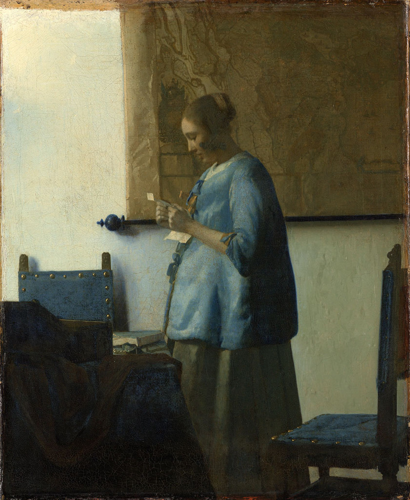 Dit schilderij van Johannes Vermeer behoort tot het verfijnde werk uit de middenperiode van de Delfse schilder. De enorme populariteit van Vermeer is ondermeer gebaseerd op de rust en tijdloosheid die zijn werk uitstraalt. Bij deze brieflezende vrouw vallen in het bijzonder het heldere licht en de blauwe tonaliteit op.