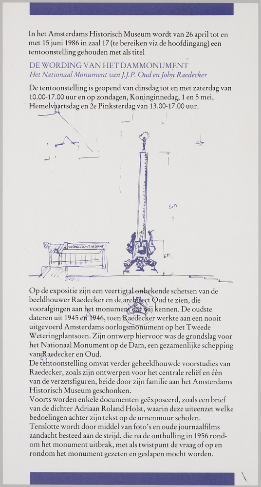 - 1986, affiche voor tentoonstelling De wording van het Dammonument, 1986