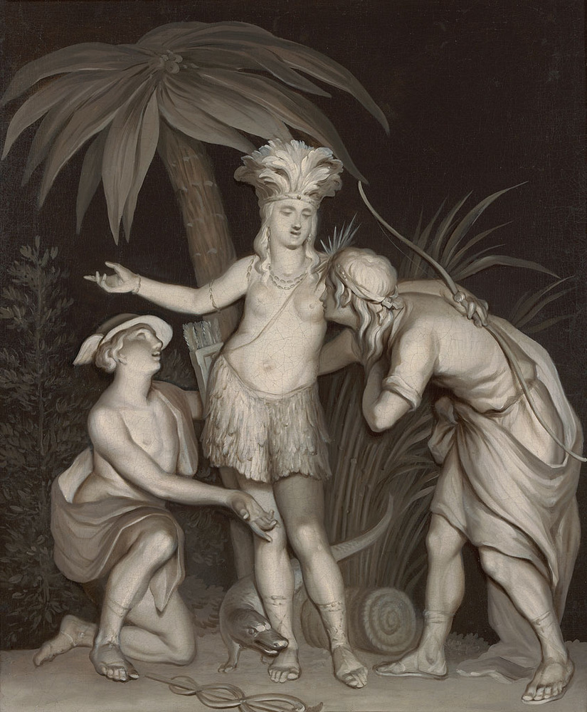 Mercurius was de god van de handel, en Apollo in de 17de en 18de eeuw de schutspatroon van de kolonisatie. Hun toenadering tot Amerika houdt verband met de aanzienlijke belangen van ons land in Suriname en Berbice, waar veel suiker, koffie en katoen voor de Amsterdamse markt vandaan kwam. In de tweede helft van de 18de eeuw werd ook druk in aandelen van Surinaamse plantages gehandeld.