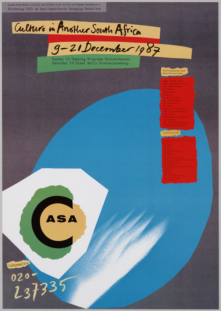 - 1987, affiche voor manifestatie en tentoonstellingen culture in another South Africa, 1987