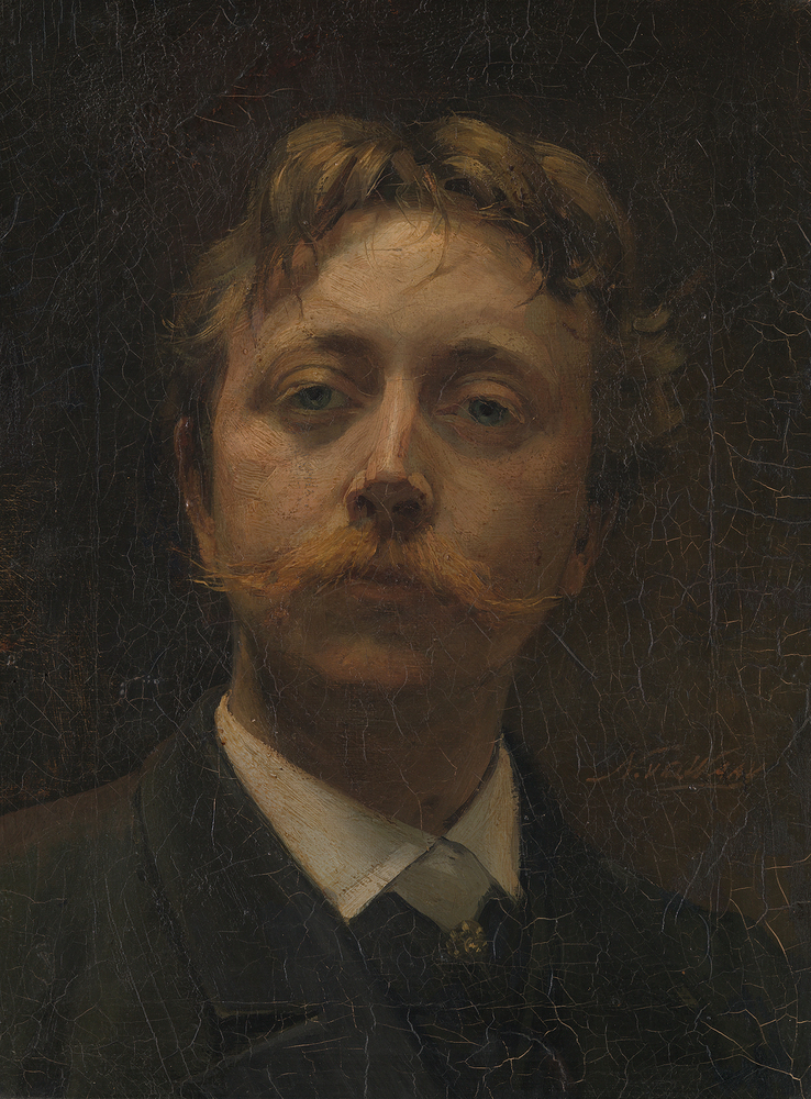 etiket achterzijde, bovenlat spieraam: Zelfportret