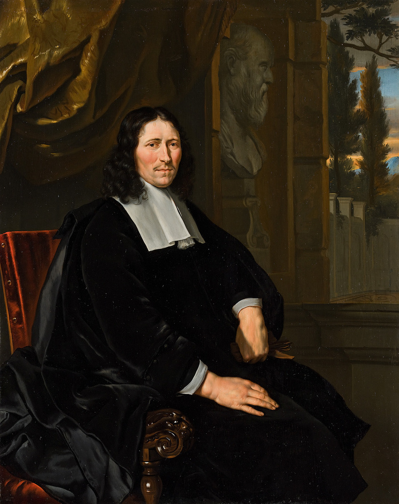 Portret van Mr. Pieter de la Court, 1620-1685, lakenfabrikant en handelaar te Leiden. Hij vestigde zich later te Amsterdam en schreef werken op staathuishoudkundig gebied.