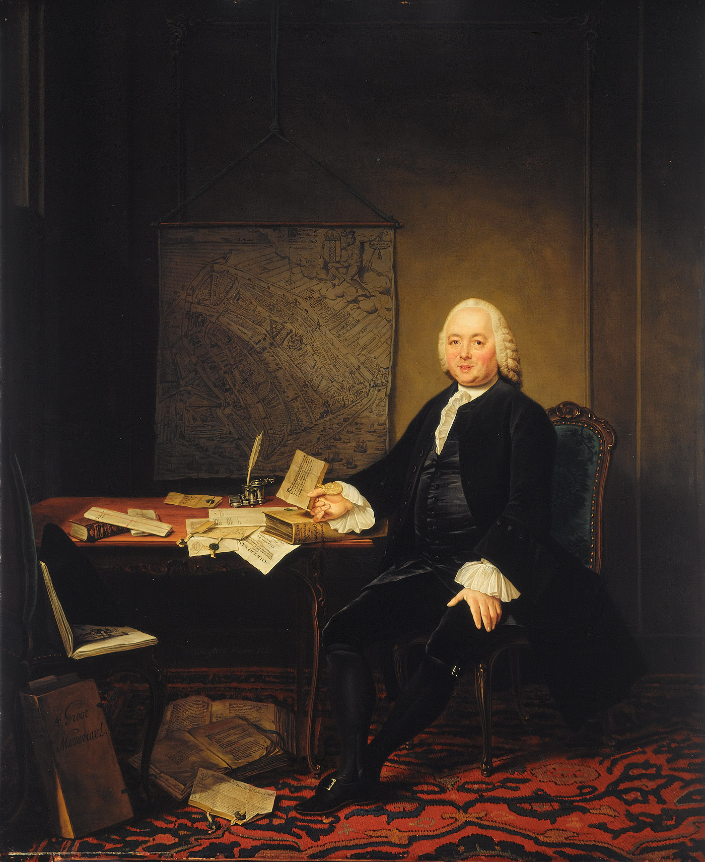 Op 26 oktober 1758 kreeg Jan Wagenaar (1709-1773) de titel 'historieschryver der stad Amsterdam', de functie waarin hij zich op dit schilderij ostentatief heeft laten portretteren. Wagenaar had zich toen al geschaard onder de belangrijkste historici van de achttiende eeuw; hij kan met zijn onderzoekende geest bij uitstek worden gezien als een vertegenwoordiger van de Nederlandse Verlichting. Om zijn onderzoek naar de geschiedenis van Amsterdam mogelijk te maken, kreeg hij als eerste persoon die niet tot de stadsregering behoorde onbelemmerde toegang tot de archieven, maar uiteraard 'onder verbintenisse van de vereischte secretesse'.
