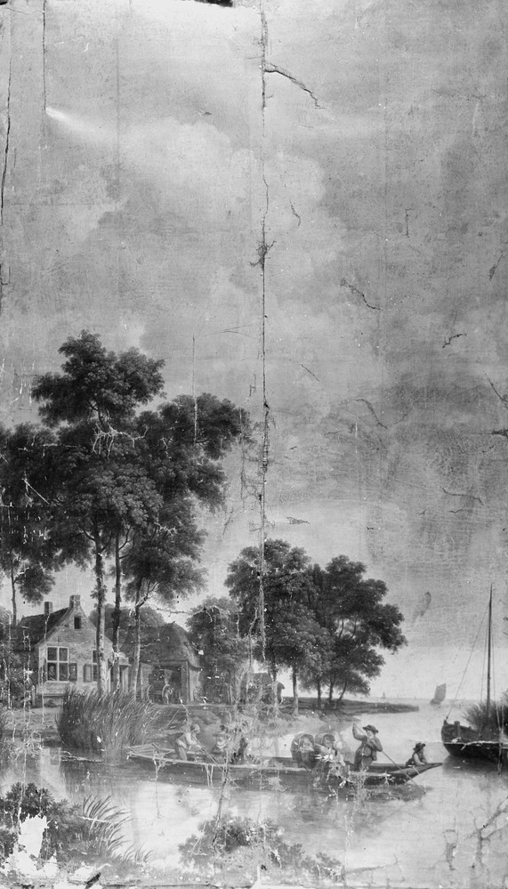 - Behangsel met Hollands landschap afkomstig uit de zaal van Keizersgracht 121, 1794 - 1799