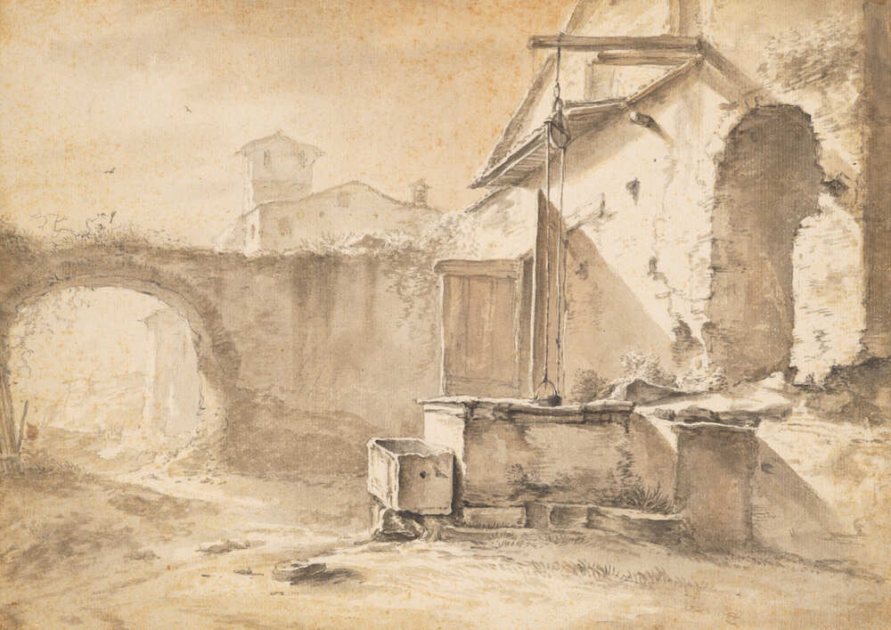 (?) Veiling Ploos van Amstel 1800, p. 77. Kunstboek N, nr. 9: 'Een ruïne van een gebouw, waarby een Put; meesterlyk met Roet; door J. Asselyn' (f 53,-, aan Abeleeven); Veiling Van Cranenburgh 1858, p. 6: 'Portefeuille B, nr. 41: 'J. Asselyn. Une porte et édifice en ruines vivement éclairés par le soleil; lavé à l'encre de chine' (f 20,-, aan Lamme voor Fodor) ; Collectie C.J. Fodor, legaat 1860
