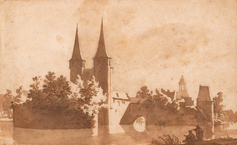 Veiling Feitema 1758, p. 95, nr. 39: 'Een Dito (van Jan de Bisschop, alle met koper rood getekend) de Oost Poort te delft, h. 3¾, br. 6¼, d.' (f 25,- , aan Van Dijk, samen met nr. 38, Koepoort te Leiden, Amsterdam, Rijksprentenkabinet, inv. Nr. 1895 A 3109); Veiling Ploos van Amstel 1800, p. 268, Kunstboek CCC, nr. 13: 'Twee dito, Gezigt te Nukoop, en een ander naar een Stads poort; fiks met dito (met de pen, en roet) getekend door denzelven (Jan de Bisschop)'(f 22:10,- , aan Fokke); Collectie C.J. Fodor, legaat 1860