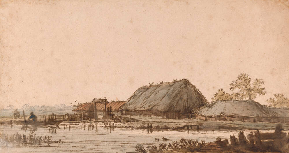 in depot - HerkomstVeiling Baartz 1860, p. 20 nr. 516: 'Erkelens. Des cabanes au bord d'un canal' (f 26,-, Lamme); Legaat C.J. Fodor 1860
